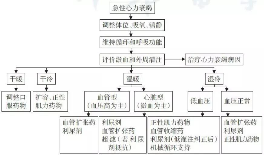 急性左心衰的诱发因素 在急性心力衰竭中,约1/3为新发病例,大部分为原有慢性心衰的急性加重。对于急性心衰的患者,应积极查找病因和诱因。 1.感染,尤其是呼吸道感染 2.心律失常,如房颤等 3.过度劳累或情绪激动,如妊娠后期及分娩过程,暴怒等 4.血容量增加,如钠盐摄入过多盐摄入过多及体液过多(如喝水过多、液体摄入量过多或输液速度过快) 5.原有心脏病变加重或并发其他疾病 6.肺栓塞 7.治疗不当,如不恰当停用利尿剂药物或降压药。 急性心衰的临床表现 1.呼吸困难:端坐呼吸,呼吸频率30~50次/分 2.咳嗽咳痰:呼吸困难、咳嗽并咯出咳粉红色泡沫痰 3.窒息感:极度烦躁、恐惧 4.皮肤湿冷:面色灰白或发绀、大汗 5.血压:一过性升高后持续下降至休克 6.听诊:两肺湿啰音或哮鸣音,心率快,心尖部可闻及舒张期奔马律 7.体位:端坐卧位,不能平卧 8.尿量:显著减少。 急性心衰的分级 根据是否存在淤血(分为“湿”和“干”)和外周组织低灌注情况(分为“暖”和“冷”)的临床表现,可将急性心衰患者分为4型:干暖、干冷、湿暖和湿冷,其中“湿暖型”最常见。 急性心肌梗死患者并发急性心衰时推荐应用Killip分级(如下图)。 急性左心衰的处理流程 急性心衰危及生命,对疑诊急性心衰的患者,应尽量缩短确立诊断及开始治疗的时间,在完善检查的同时即应开始药物和非药物治疗,早期治疗流程如下图。 急性左心衰的急救流程可归纳为:坐起来、吸上氧、打五针(镇静、利尿、强心、扩血管、解痉)。 1.坐起来 立即协助患者取端坐位,双腿下垂,以减少静脉回流,减轻心脏负荷。 2.吸上氧 保持气道开放,立即给予高流量鼻导管氧气吸入。肺部听诊有湿啰音时,在湿化瓶内加入30%~50%的酒精,有利于消除肺泡内的泡沫。病情严重者给予面罩加压给氧,必要时给予气管插管,呼吸机辅助通气。保证血氧饱和度维持在95%以上,防止出现脏器功能障碍。 3.打五针 急性左心衰的患者,应迅速开放两条静脉通道,遵医嘱正确使用药物,观察疗效与不良反应。 (1)镇静 吗啡可使患者镇静,减慢心率,同时扩张小血管而减轻心脏负荷。早期即予吗啡3~5mg静注,必要时可重复使用一次,老年患者应减量。观察患者有无呼吸抑制或心动过缓。伴明显和持续低血压、休克、意识障碍、COPD等患者禁忌使用。 (2)利尿 有液体潴留证据的急性心衰患者均应使用利尿剂,首选袢利尿剂,如呋塞米20~40mg静注,弹丸式推注或者持续泵入,可重复使用。 (3)强心 常用洋地黄制剂,尤其适用于快速房颤或已知有心脏增大伴左心室收缩功能不全的患者。可用毛花苷甙丙(西地兰)静脉注射,首剂0.2~0.4mg,2h后可再给0.2~0.4mg。急性心肌梗死后24h内应尽量避免使用。 (4)扩血管 可选用硝普钠、硝酸甘油、乌拉地尔静滴,严格按医嘱定时监测血压(如每5分钟测量1次),用输液泵控制速度,根据血压调整剂量。收缩压<90mmHg或症状性低血压患者应慎用。 硝普钠:为动、静脉血管扩张剂。硝普钠使用不应超过72h,停药应逐渐减量,并加用口服血管扩张药,以避免反跳现象。硝普钠见光易分解,应现配现用,避光滴注。 硝酸酯类:可扩张小静脉,降低回心血量。持续应用可能发生耐药。 乌拉地尔:为动脉血管扩张剂,减轻后负荷。 (5)解痉 可给予氨茶碱解除气道痉挛。 急性左心衰的出入量管理 容量超负荷是急、慢性心衰发生的重要病理生理过程,能导致组织间隙液体潴留,继而出现淤血症状。因此,控制液体潴留,减轻容量超负荷,是缓解心衰症状、降低再住院率、提高生活质量的重要措施,是治疗充血性心衰的基石之一。 急性左心衰患者保持每天出入量负平衡约500ml,体重下降0.5kg,严重肺水肿者负平衡为1000~2000ml/d,甚至可3000~5000ml/d。3~5天后,如肺淤血、水肿明显消退,应减少负平衡量,逐渐过渡到出入量大体平衡。 急性左心衰的饮食指导 给予低热量、高蛋白、高维生素饮食。少食多餐,避免过饱。限盐,限水,轻度心衰钠盐摄入量应<5g/d,中度心衰钠盐摄入量应2.5~3g/d,重度心衰应<1g/d。 急性左心衰的用药指导 (1)观察洋地黄类药物在使用过程中有无恶心、呕吐、黄视、绿视等。 (2)使用利尿剂的患者,尽量在白天使用。并观察患者的尿量、体重、有无乏力、腹胀、肠鸣音减弱等低血钾的表现。 (3)使用β-受体阻滞剂的患者,注意观察患者的血压、血糖、心率的变化,如果血压<90/60mmHg或者心率<55次/min,应该及时就医。 (4)使用血管扩张剂的患者,注意观察患者的血压和脉搏,严格掌握输液速度。 (5)使用ACEI的患者,注意观察血压、血钾的变化,有无血管神经性的水肿、干咳、肾功能的损害,如果咳嗽严重需及时就医。另外,若晨起头晕,最好在床边坐几分钟后再起床,头晕严重者及时就医。 (6)控制输液的速度和量,以防止诱发急性肺水肿,输液速度控制在15~30滴/分,尽量避免输入氯化钠溶液。