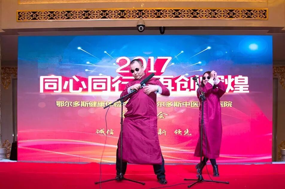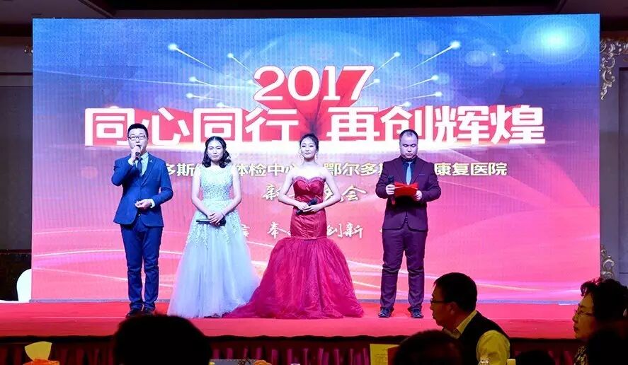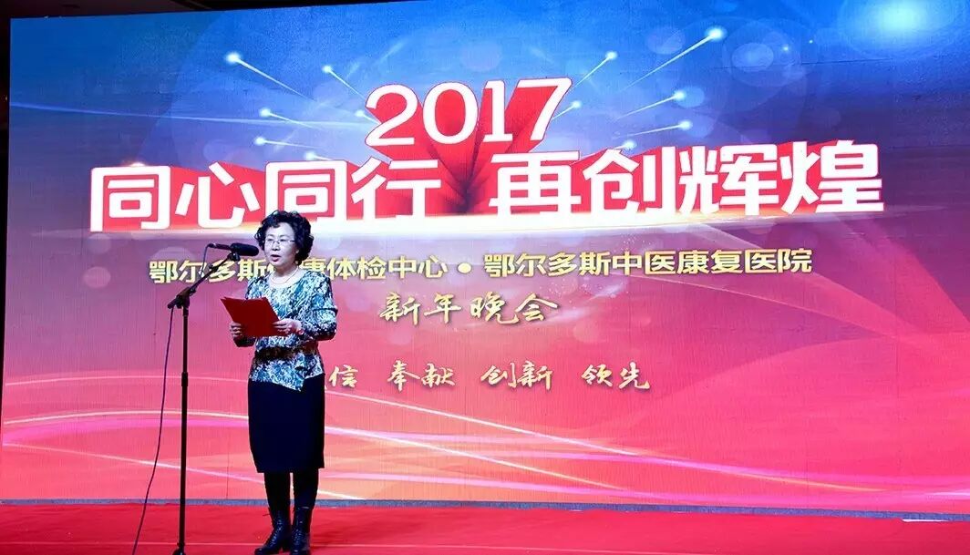 傍晚19时,“同心同行 再创辉煌”——鄂尔多斯健康体检中心、鄂尔多斯中医康复医院2017新年晚会正式开始。鄂尔多斯市亿康投资管理有限公司王捷董事长致新年贺辞。